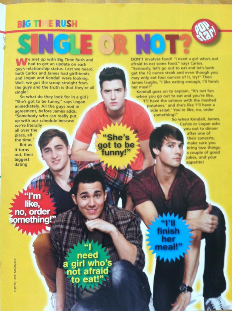Wir trafen uns mit Big Time Rush und musste ein Update auf jeden Kerl Beziehungsstatus bekommen. Zuletzt hörten wir, sowohl Carlos und James hatten Freundinnen und Logan und Kendall suchten. Nun, wir haben die Schaufel direkt aus dem Kerl und die Wahrheit ist, dass sie alle sind single!